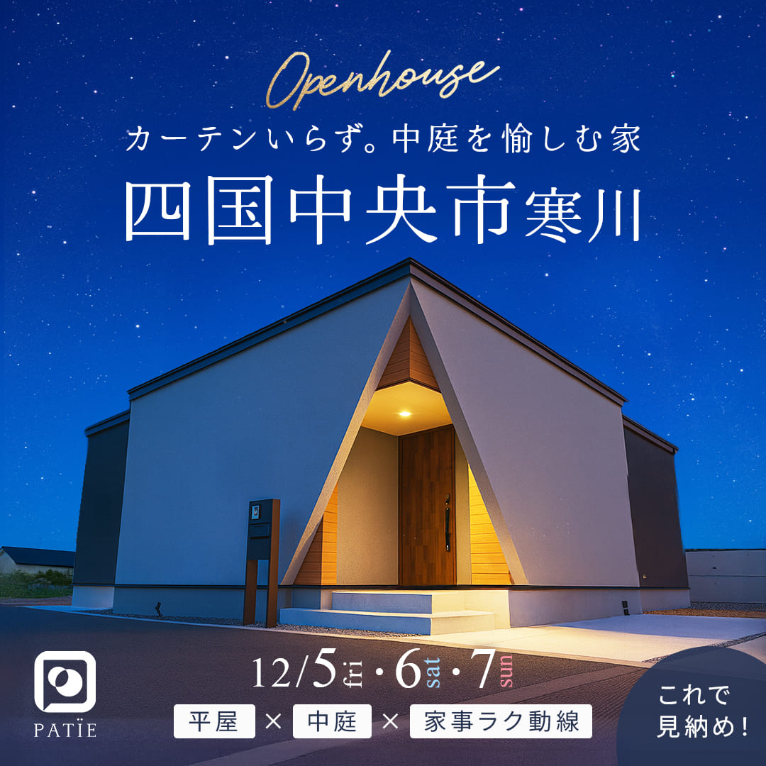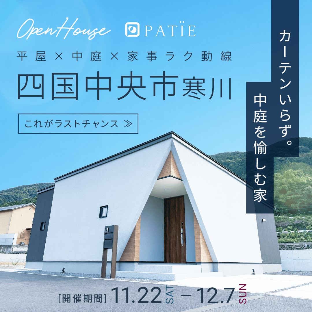 最後の公開| カーテンいらず。中庭を愉しむ家【平屋見学会】