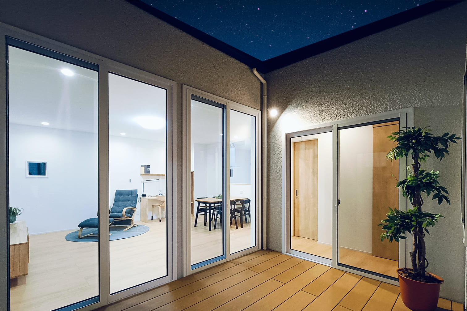 家族や友人とBBQをしたり、星空を眺めたり。“ほっとゆっくりカフェ”も楽しめる中庭。あるだけで、暮らしの楽しみがぐっと広がります。光と安心を両立する、防犯性の高い設計もポイントです。